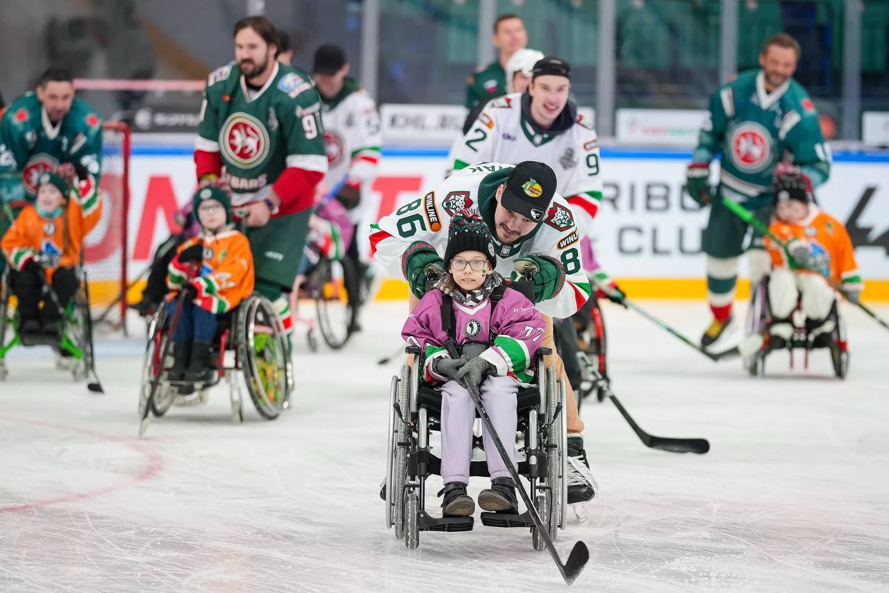 "Хоккей каждому" - ежегодный благотворительный матч, на котором ребенок с поражениями опорно-двигательной системы и хоккеист составляют одну игровую единицу. Именно благодаря этому матчу зародилось направление адаптивного хоккея в Татарстане.